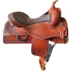 Sella western da barrel realizzata in morbido cuoio di alta qualità, seggio scamosciato, arcione in Ralide, gonna quadra e fibbie in acciaio inox che gli conferiscono stabilità, sicurezza e resistenza nel tempo. Grazie all'ampia superficie di appoggio garantisce un efficiente assorbimento degli urti ed un'ottima distribuzione del peso del cavaliere.
